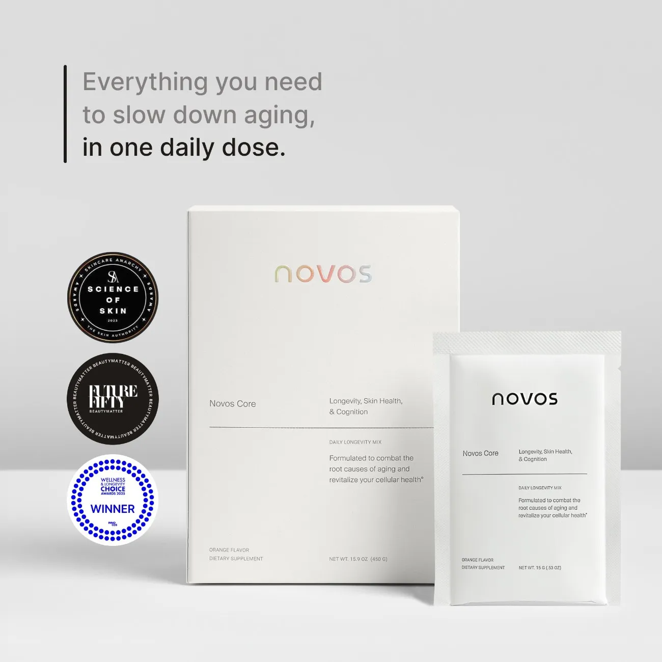 NOVOS Core is the pioneering longevitydrink proven to tackle all 12 cellularcauses of aging and slow down yourpace of aging.